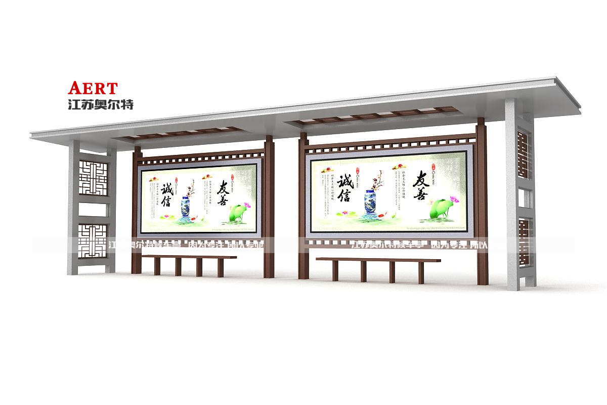 | 候車亭尺寸 | 一大一小尺寸:寬7米,高2.9米,寬1.5米 二(èr)大一小尺(chǐ)寸:寬12米,高2.9米,寬1.5米 三大一小尺(chǐ)寸:寬17米,高2.9米,寬1.5米 標準大燈箱尺寸:寬3.65米,高1.8米 標準小燈箱尺寸:寬1.2米,高1.8米 注(zhù):可根據客戶需求進行定(dìng)製,采用模(mó)塊化設計,組合方式靈活多變。 |