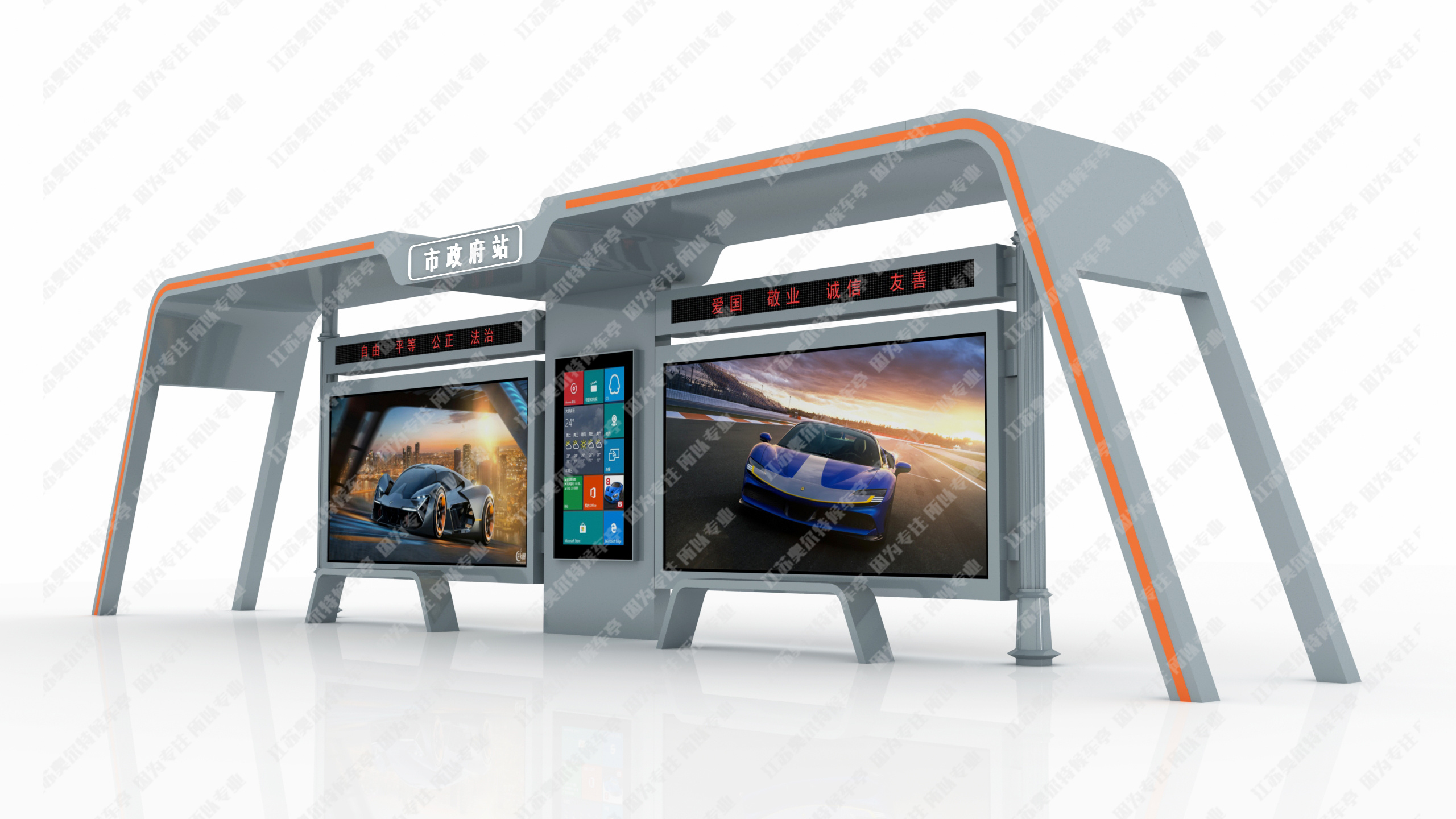 | 候車亭(tíng)尺寸 | 一大一小尺寸:寬7米,高2.9米,寬1.5米 二大一(yī)小(xiǎo)尺寸(cùn):寬12米,高2.9米,寬1.5米 三大一小尺寸:寬17米(mǐ),高2.9米,寬1.5米 標準大燈箱尺寸:寬3.65米,高1.8米 標準小(xiǎo)燈箱尺寸:寬1.2米,高1.8米 注:可根據客(kè)戶需求進行定製,采用模塊化設計,組(zǔ)合方式靈活多變。 |