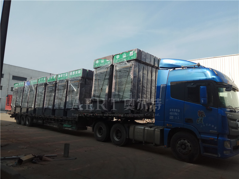 [08-15]甘肅批500台LED滾(gǔn)動畫麵路名牌燈箱第三車貨物發貨(huò)