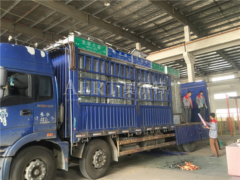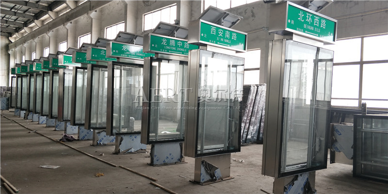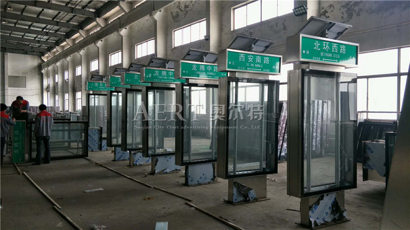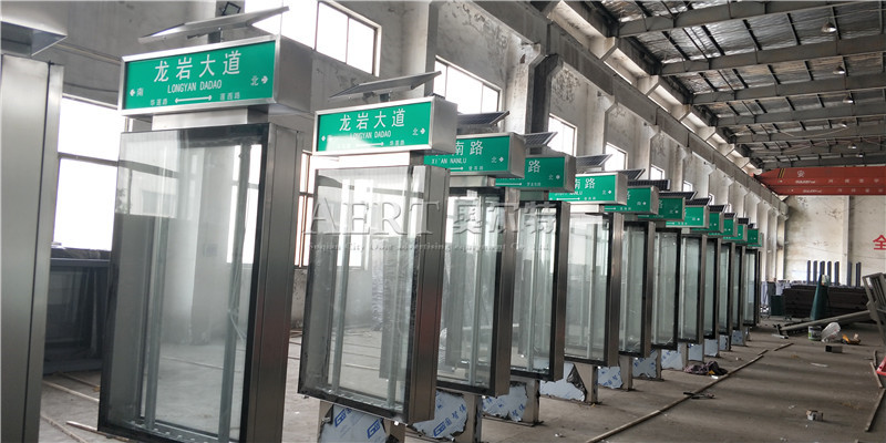[4-30]福建龍岩老客戶續訂100台太陽能304不鏽鋼路名牌燈箱裝車發貨