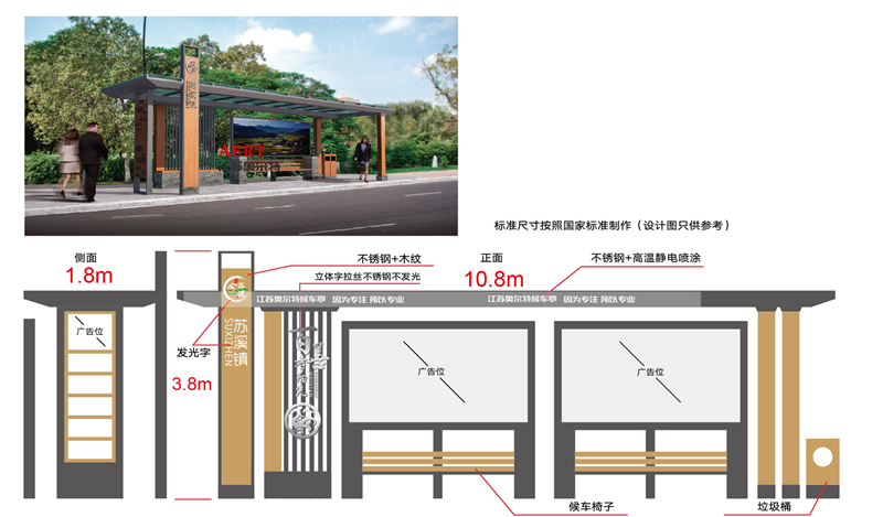 在顏(yán)色(sè)運用上仿古候(hòu)車亭主要是采用灰色或者深咖(kā)啡色,因為加入了古典韻味,所以可以和周圍的古典建築比較巧妙的融合在一起,更加突出城市的(de)古典韻味,仿古候車亭(tíng)的顏色深沉仿照古代風格效果逼(bī)真(zhēn),不容易褪色,在視覺上給人們的感覺是有文化(huà)積澱(diàn)的大氣效果,讓人仿佛置身於古代的(de)情境中,感受古(gǔ)人的(de)詩情畫意,讓人可以暫時遠離現代城市的喧囂和快節奏的生活,感受輕鬆的視(shì)覺效果,身心得到了放鬆和愉悅,而且(qiě)在材料的選擇上,也是選用無(wú)汙染的不鏽(xiù)鋼材料(liào),對人體(tǐ)無汙染,還可以保護環(huán)境的(de)同時增加了城市的(de)美感。江蘇国产亚洲熟妇在线视频候車亭廠家自成立以來,便(biàn)以“讓城市更美好”的企業理念,始(shǐ)終秉承宿遷候車亭廠(chǎng)家的優良品質和優良傳統,以擅長設計和近乎苛刻的產品品質體現的美觀與人(rén)性化。
