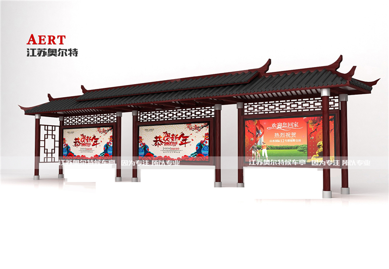 公交(jiāo)候車亭象征著一座城市的窗口,進入(rù)一(yī)座城市(shì),仿古候車亭因古樸典雅的色調、層(céng)巒疊(dié)嶂的設計以(yǐ)及特色的鏤空雕花裝飾烘托出獨特的古典氣息,使它矗(chù)立在鋼筋混凝土的(de)現代都市散發著別具特(tè)色的曆(lì)史韻味.