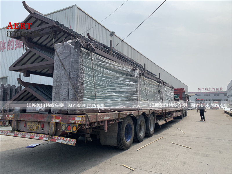 分(fèn)享到   [06-23]河南(nán)開封仿古候車亭公交站(zhàn)台燈箱公交停靠站(zhàn)候車廳發貨案例