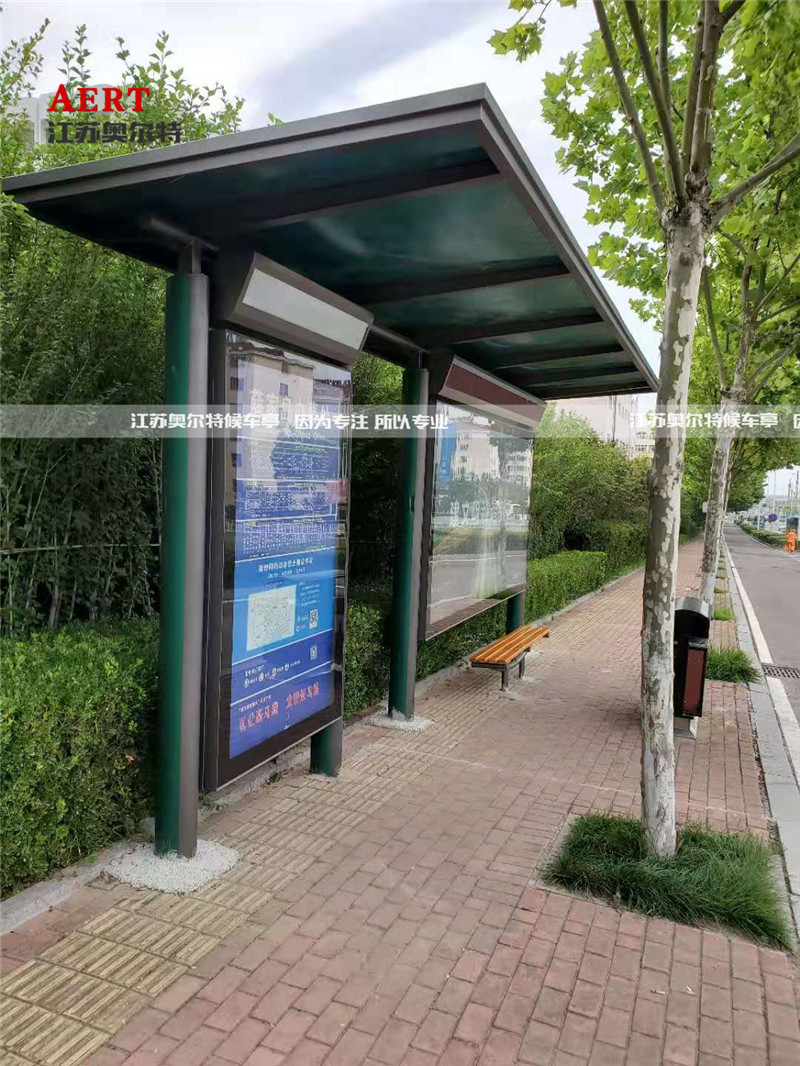 [9-06]青島鋁(lǚ)型材款候(hòu)車亭燈箱公交站台巴士停靠站鄉鎮候車廳公交停靠站案例