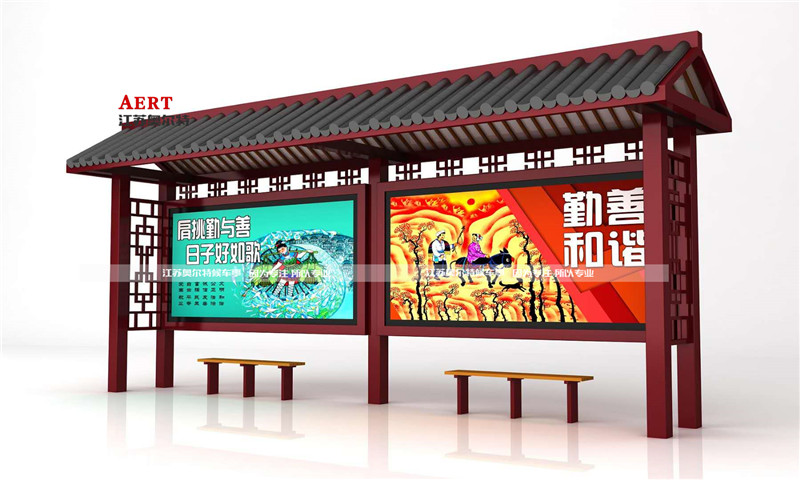 隨著人們審美觀要求的日益提升,形式單一的候車亭(tíng)已經不能夠滿足人(rén)們(men)的審美需求,越來越多的人更喜歡選擇一些獨特的,有個性的候車亭去休(xiū)息。因此,想要滿足(zú)現今(jīn)追求(qiú)美感的人群的(de)需求,室外候車亭的設計必須有創意,有含義。仿古候車亭不但結合了當代人追求的複古元素,而且它的韻味十足,能完全融(róng)合於現代的都市場景中,不得不(bú)承認,如今這些仿古候車亭在使用的(de)過程當中,受到(dào)了很多公交車乘客的認可。仿古候車亭簡單的來說,也是為了迎合國家設計候車亭創新的標準,它能夠改善候車(chē)亭在(zài)設計過程當中(zhōng)單一的(de)情況,同時,這(zhè)些複古的候車亭基本上都是被設計在一些旅遊景點當中,比(bǐ)如說一些(xiē)古代的(de)王朝陵墓,或者古代的博物館以及展覽館等等,這些地(dì)方設置的仿古候車亭本身都是結(jié)合當地的(de)一些特色進行設計的。