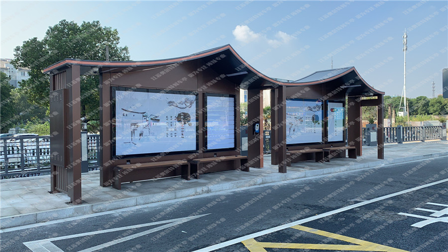 仿(fǎng)古公交站牌(pái),就是在公交站(zhàn)台上加入了古典元素創新,改善了現代公交站台款式設(shè)計的一種模式。仿古公交站台(tái)近年來受到(dào)了旅遊景區的青睞,看起來不僅有古代風格的韻(yùn)味,還具有現代科技的智能化功能。仿古(gǔ)公交候車亭一般應用於景區景點、具有悠久曆史的古(gǔ)城等地的公交站台,設計加入了屋簷中式元素,古色古香、中國風足、大氣大方、複雜美觀,不僅為市民和遊(yóu)客(kè)的(de)公交出行提供便利,更(gèng)成為(wéi)城市或景區的重要標誌。比如屋簷、中國節(jiē)等,加上仿(fǎng)古(gǔ)瓦,從視(shì)覺效果來看,仿古公交候(hòu)車亭會散發古老厚重的韻味。
