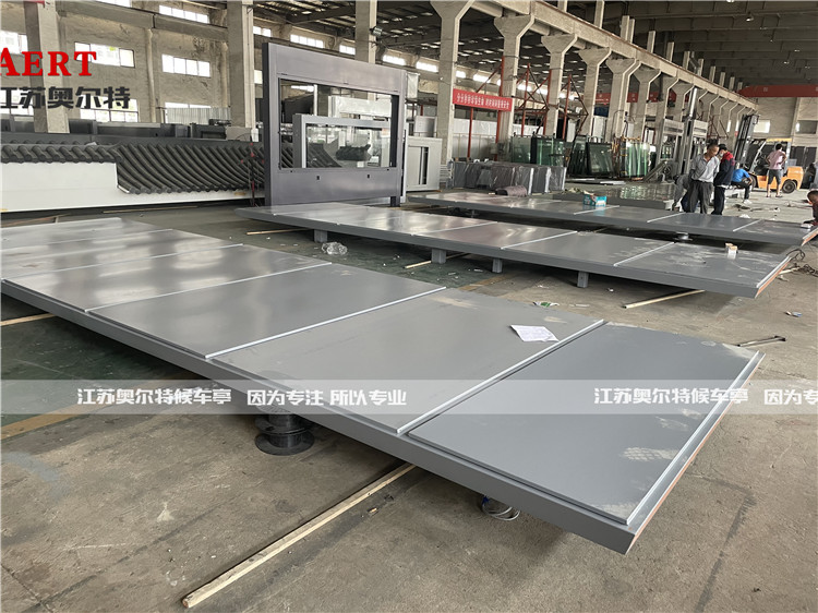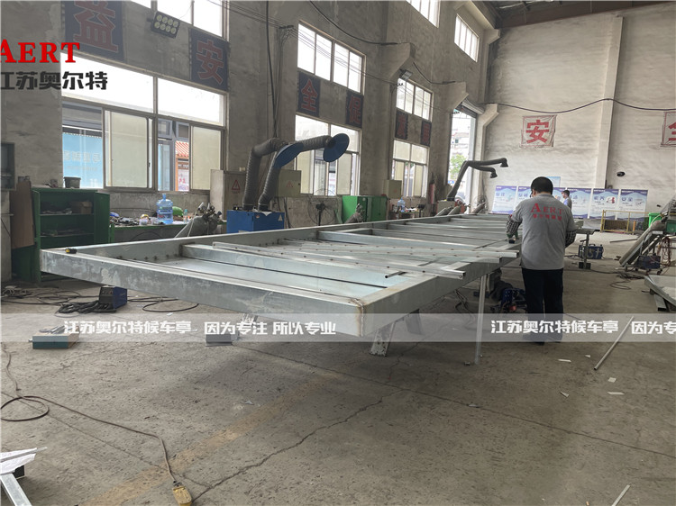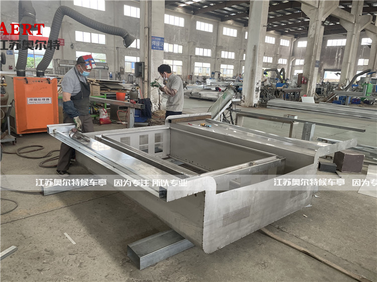 此款頂棚為彎弧(hú)形狀(zhuàng),接口全部使用防水結構膠覆蓋,防止頂棚滲水漏(lòu)水