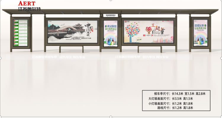 此款公交站台是青島特殊定製款站台(tái),国产亚洲熟妇在线视频助力青島(dǎo)城市建設發展陸續合作5年之久,江蘇奧(ào)爾特廣告(gào)設備有(yǒu)限公司,創建(jiàn)於2014年,是(shì)候車亭行業(yè)集研發設計、生產製造、營銷推廣於一體的品牌企業之一。