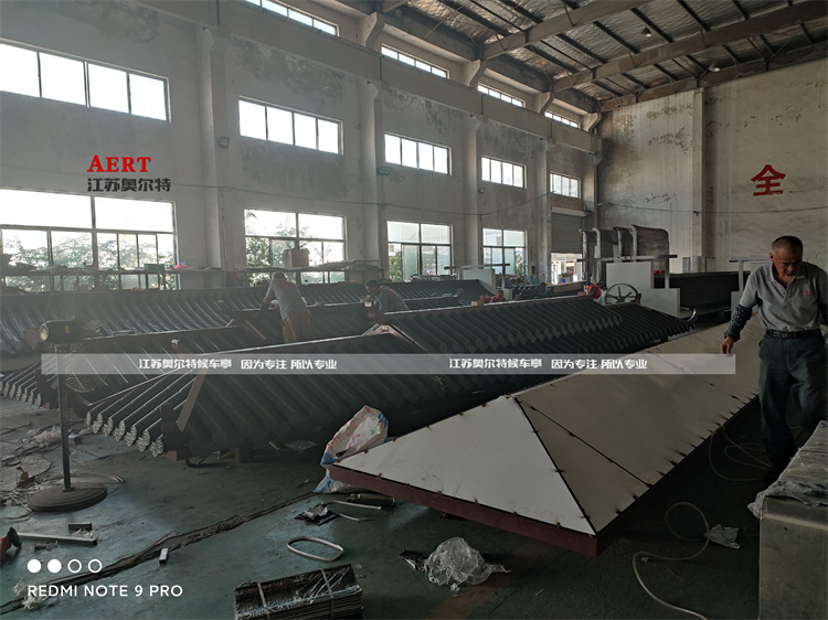 頂棚(péng)瓦是一片片人工打上去的