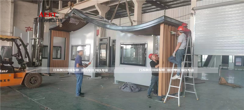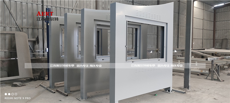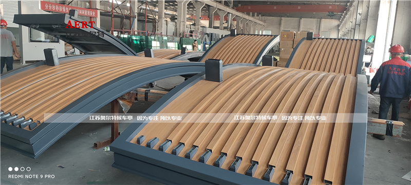 浙江嘉興人字型木紋漆轉印公交候車亭發貨中