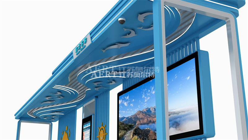 宿遷智能候車亭廠家江蘇国产亚洲熟妇在线视频廣告設備有限公司本次為廣大惠州設計的海洋風格候車亭,它將海洋元素與現代公交站(zhàn)台設計相結合,創造出一種既具有實用性又充滿海洋文化特色的(de)公交站台。