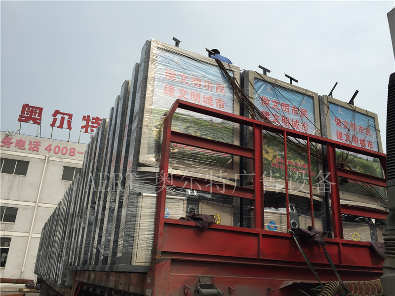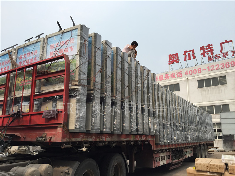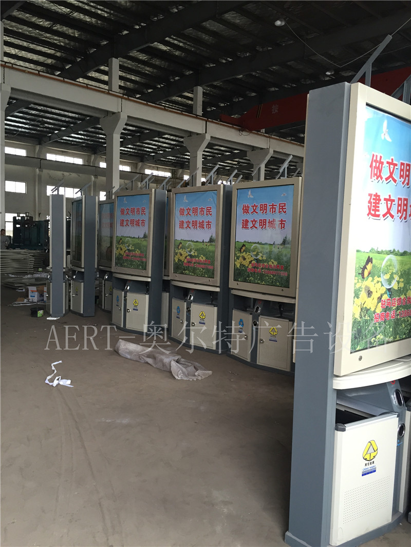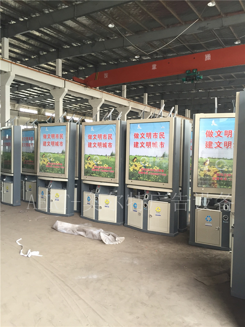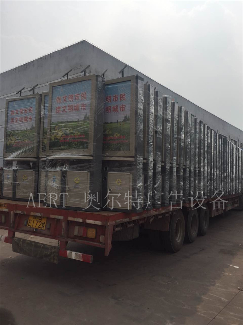 河南駐馬店新款太陽能廣告(gào)垃圾(jī)箱裝車發貨