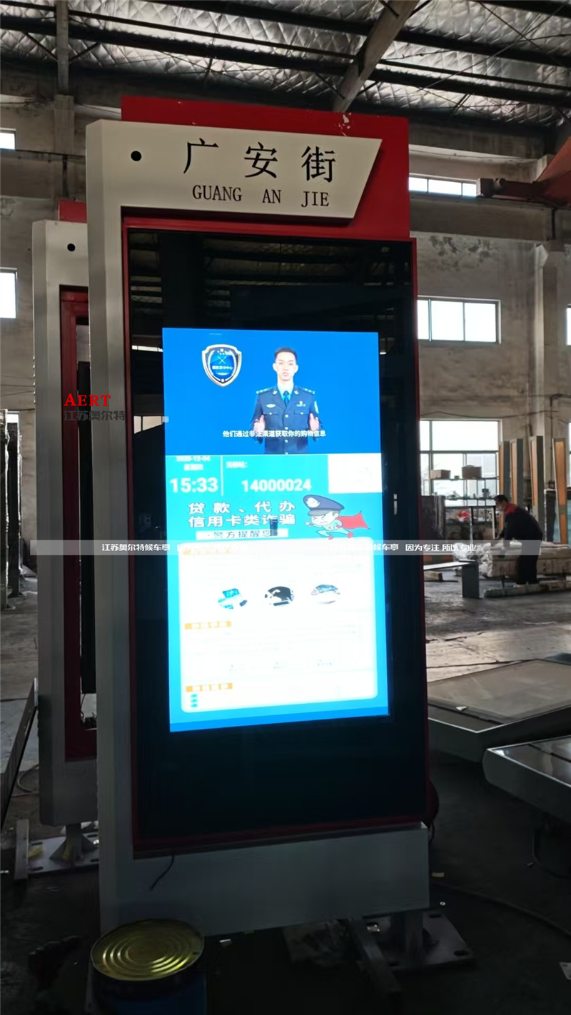 延安電子站牌采用紅白色調搭配(pèi),視覺上醒目且契合城市公共設施的(de)設計風格,整體造(zào)型簡(jiǎn)潔大氣,適配城市街道場景(jǐng)。
