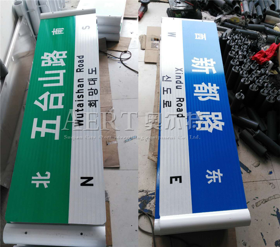 宿(xiǔ)遷路名(míng)牌廠家建議您路(lù)名牌牌麵的製作嚴格按照國標要求或者甲(jiǎ)方要求,從鋁板,反光膜和製作(zuò)工藝,都要實打實的進行;路名牌的三大配(pèi)件之一,托盤;目前市場上魚龍混雜,讓一些門外漢難免會眼花(huā)繚亂,目前四代,五代路名牌常用的是新型ABS塑料(liào)托(tuō)盤,小的托盤(pán)重量在2.5kg,大的托(tuō)盤重量在3kg,質量差(chà)的普通托盤重量(liàng)和這個相比是天壤之別(bié),這個也是甲方驗(yàn)收的重要指標之一;路名牌重要(yào)的部件---立柱,目前采(cǎi)用鍍鋅鋼管,外觀采(cǎi)用高溫靜(jìng)電噴塑,這樣處理(lǐ)方法使路名牌美(měi)觀又耐用;宿遷市易安交(jiāo)通設施有限公司嚴格按照客戶要(yào)求要生產,已經為全國幾個省市成功安裝路名牌,並去(qù)取(qǔ)得一致好評!
